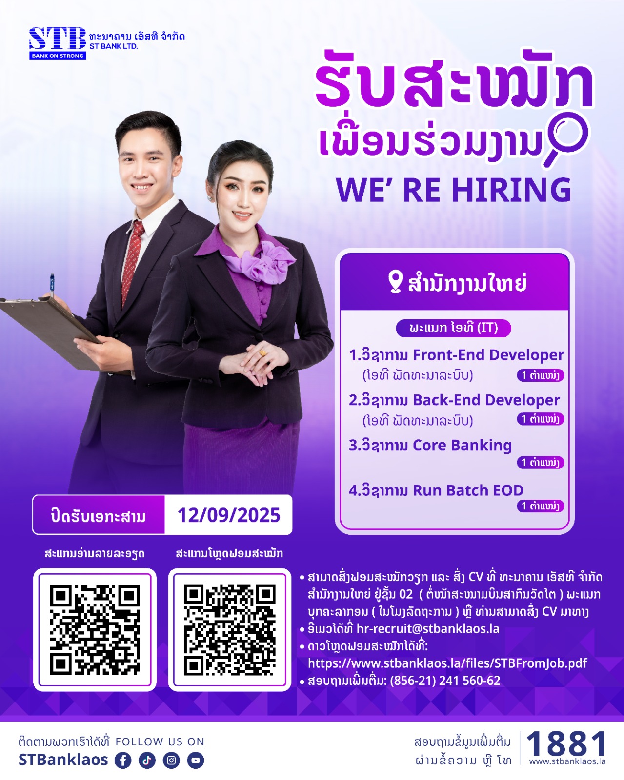 - ໃບສະໝັກວຽກ :ຈາກທະນາຄານເອັສທີ.