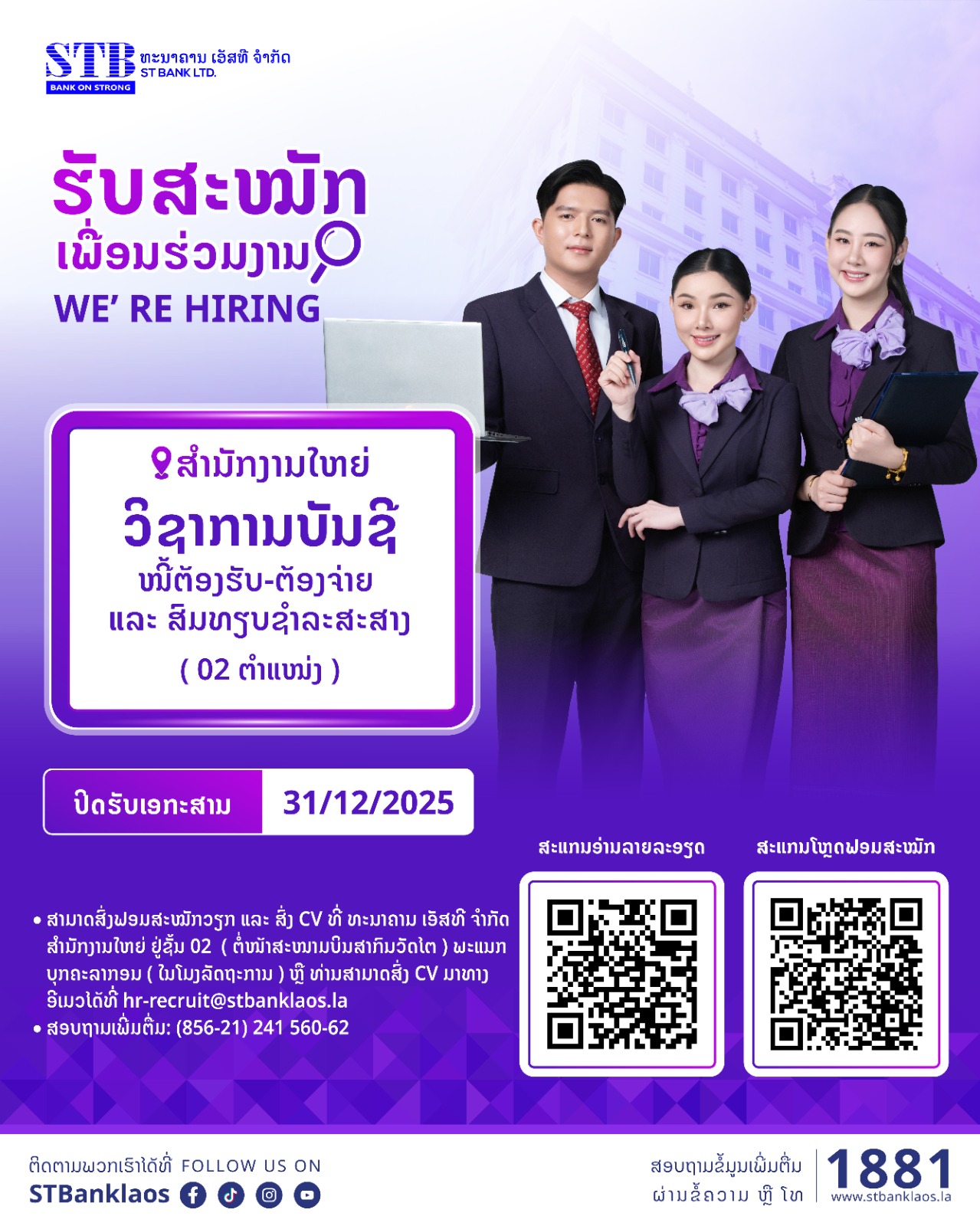 - ໃບສະໝັກວຽກ :ຈາກທະນາຄານເອັສທີ.