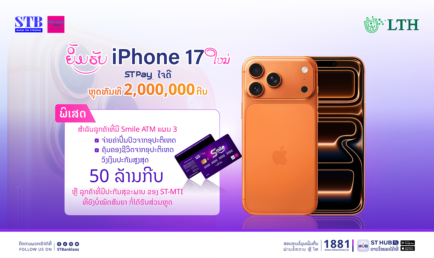 ຍິ້ມຮັບ iPhone 17 ໃໝ່ ST PAY ໃຈດີ ຫຼຸດທັນທີ 2,000,000 ກີບ